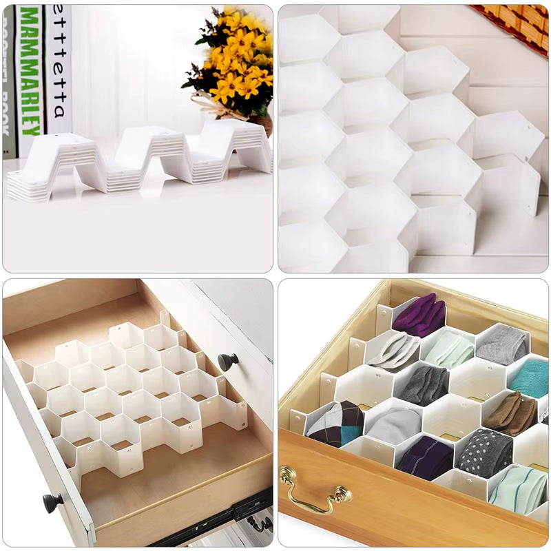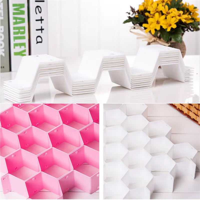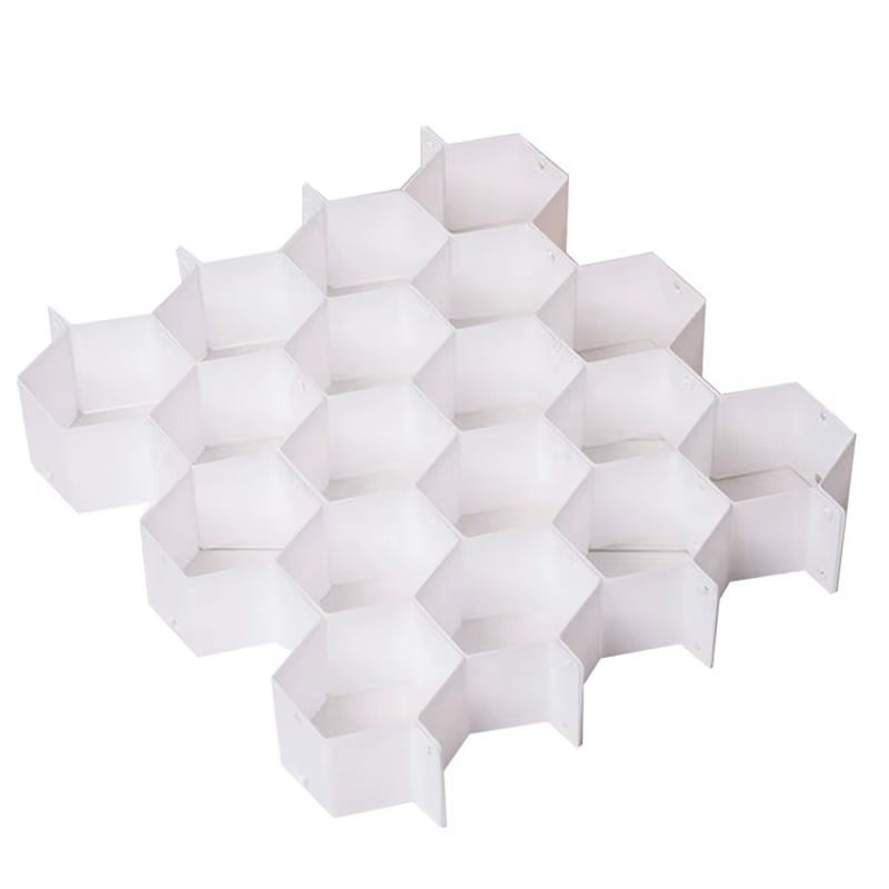 Mantieni i tuoi cassetti sempre ordinati e organizzati con il divisore per cassetti a nido d’ape. Grazie al suo design intelligente a celle esagonali, ti permette di separare facilmente calze, biancheria intima, accessori o piccoli oggetti, evitando disordine e perdita di spazio.