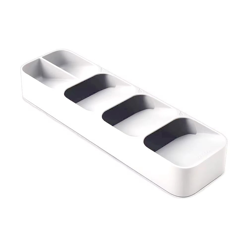 Ottimizza lo spazio nei tuoi cassetti con questo pratico organizer per posate dal design intelligente. Grazie alla struttura compatta con scomparti sovrapposti e inclinati, permette di organizzare cucchiai, forchette e coltelli occupando molto meno spazio rispetto ai classici divisori.